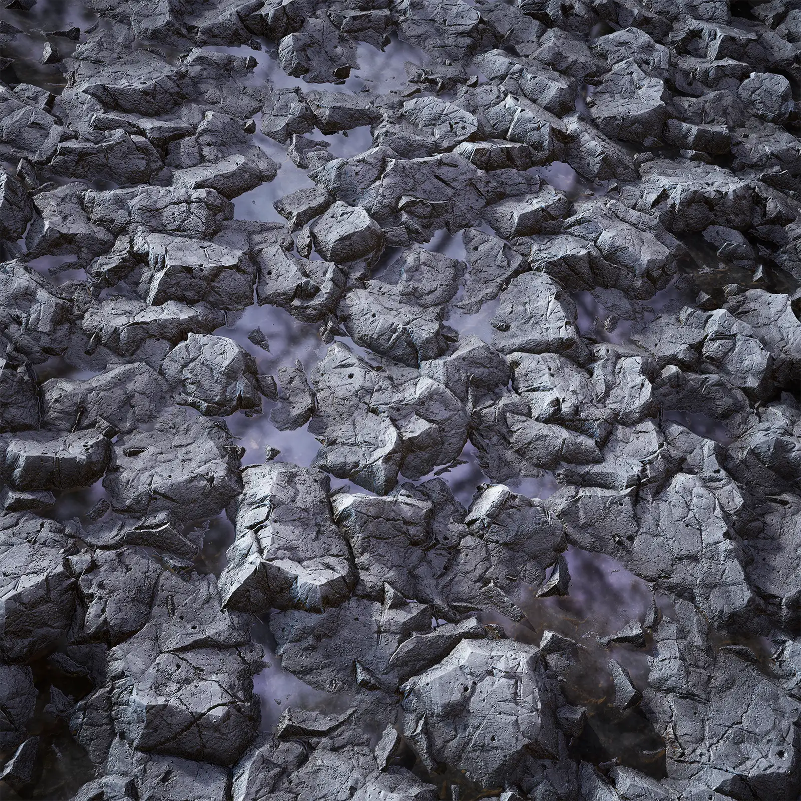 Wet Grey Rock with maps: basecolor/diffuse, glossiness, height (TIFF), IOR, metallic, normal (DirectX), normal (OpenGL), reflection, roughness and specular. Resolution: 8192x8192px and 4096x4096px.