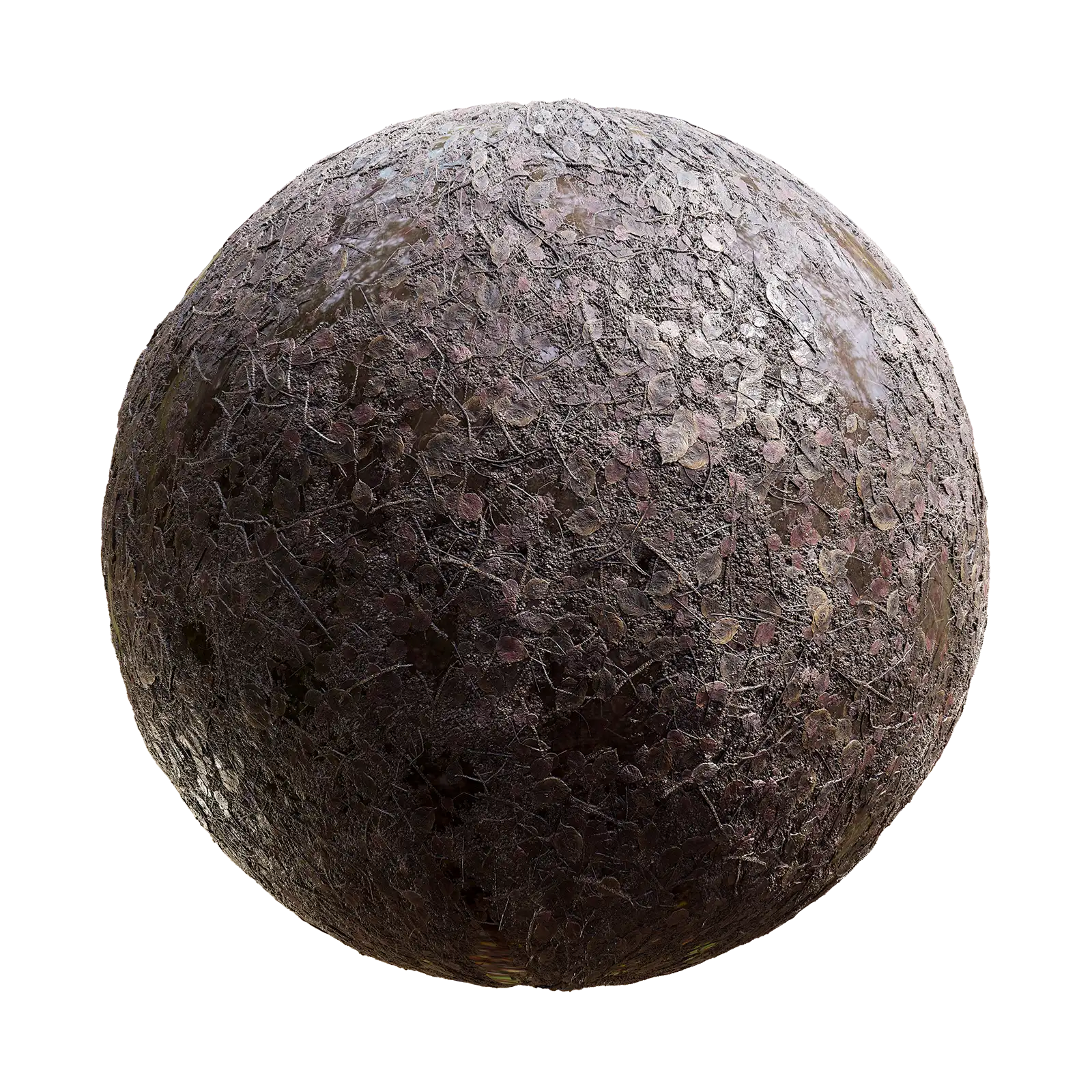 Wet Leaf and Sticks Ground with maps: basecolor/diffuse, glossiness, height (TIFF), IOR, metallic, normal (DirectX), normal (OpenGL), reflection, roughness and specular. Resolution: 8192x8192px and 4096x4096px.