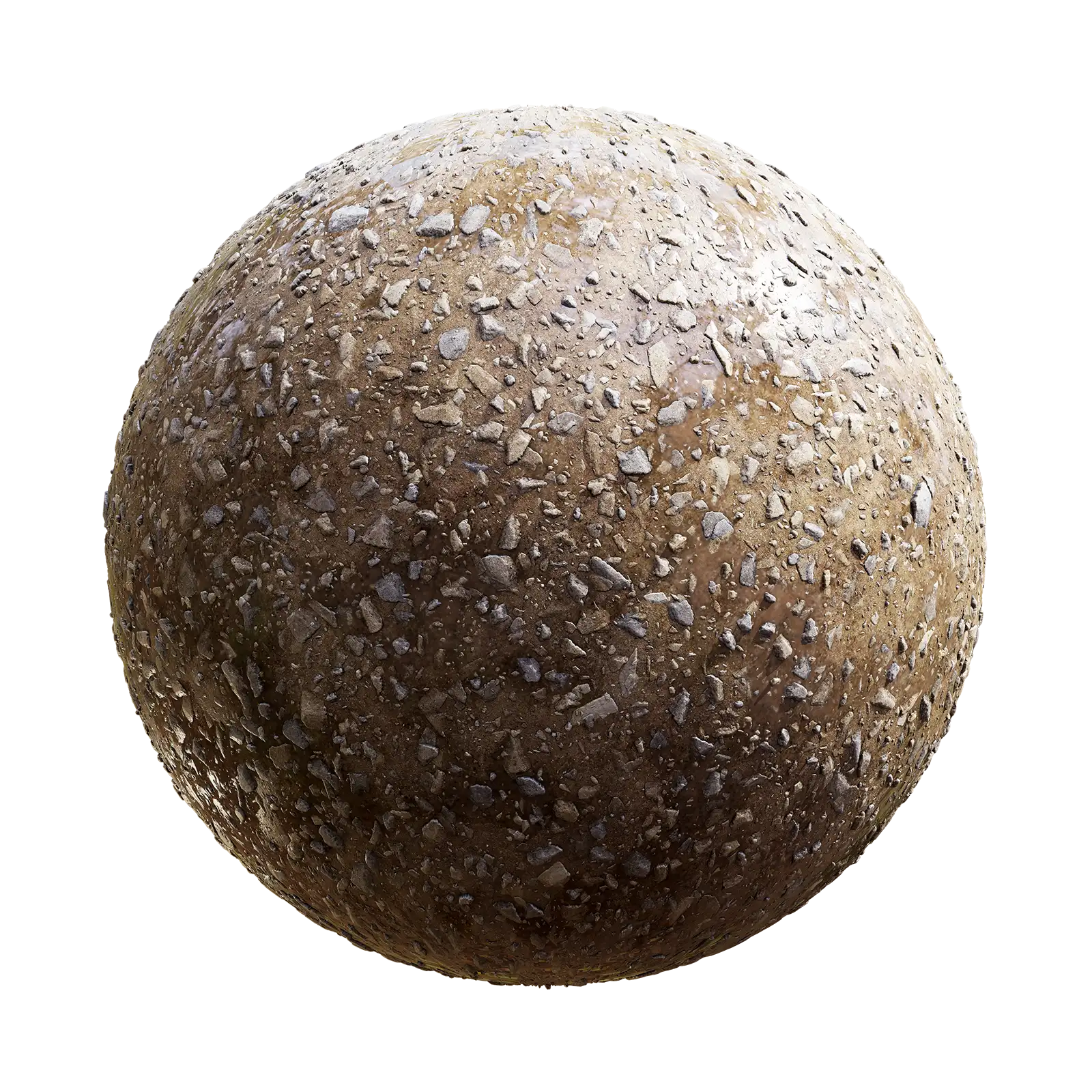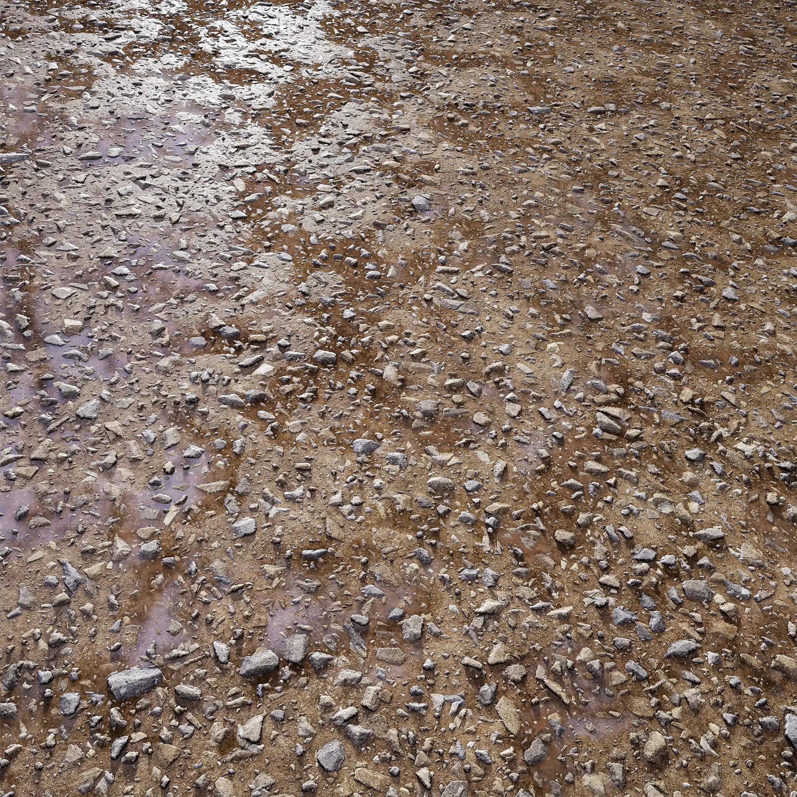 Wet Rocky Ground with maps: basecolor/diffuse, glossiness, height (TIFF), IOR, metallic, normal (DirectX), normal (OpenGL), reflection, roughness and specular. Resolution: 8192x8192px and 4096x4096px.