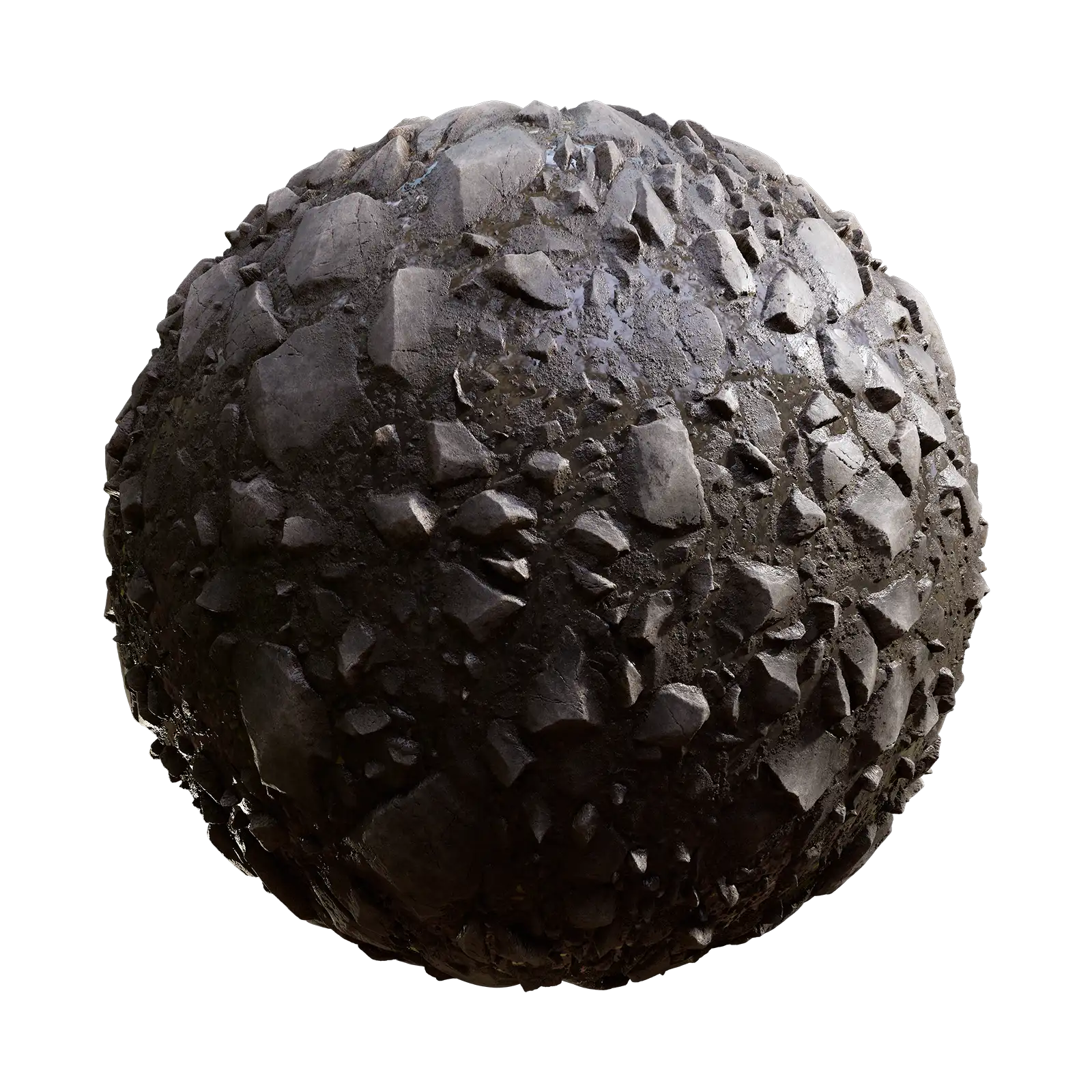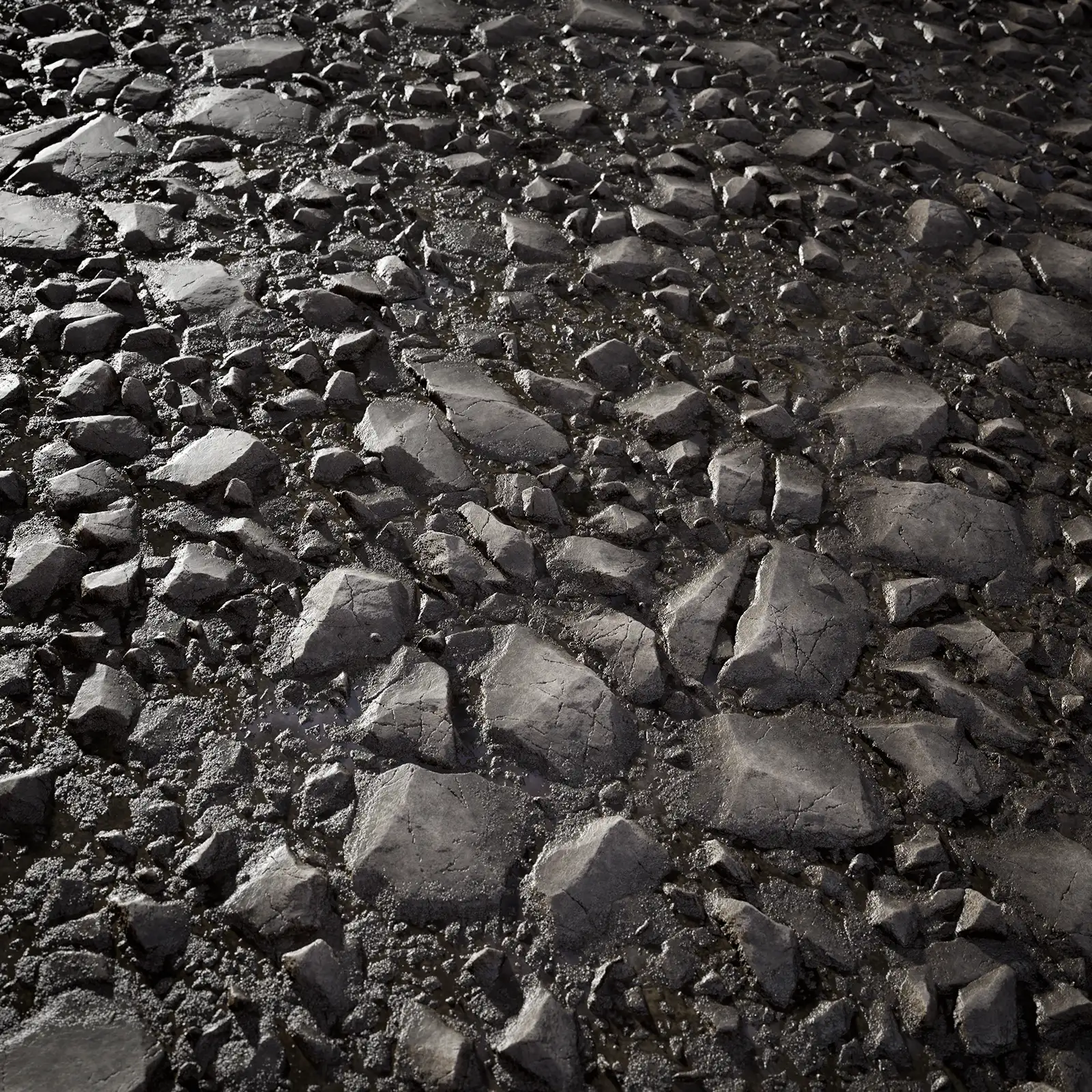 Wet Rocky Ground with maps: basecolor/diffuse, glossiness, height (TIFF), IOR, metallic, normal (DirectX), normal (OpenGL), reflection, roughness and specular. Resolution: 8192x8192px and 4096x4096px.