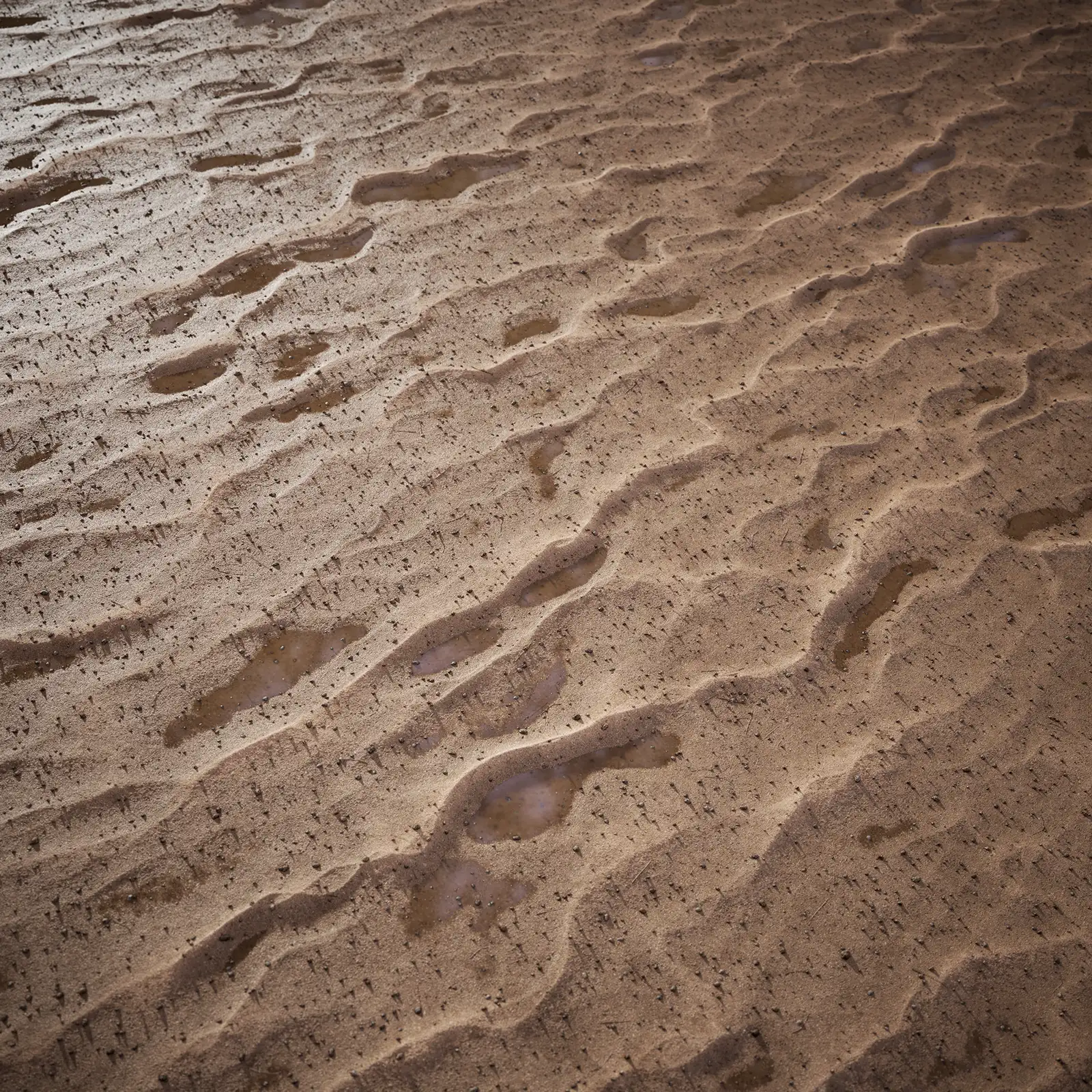Wet Sand with maps: basecolor/diffuse, glossiness, height (TIFF), IOR, metallic, normal (DirectX), normal (OpenGL), reflection, roughness and specular. Resolution: 8192x8192px and 4096x4096px.