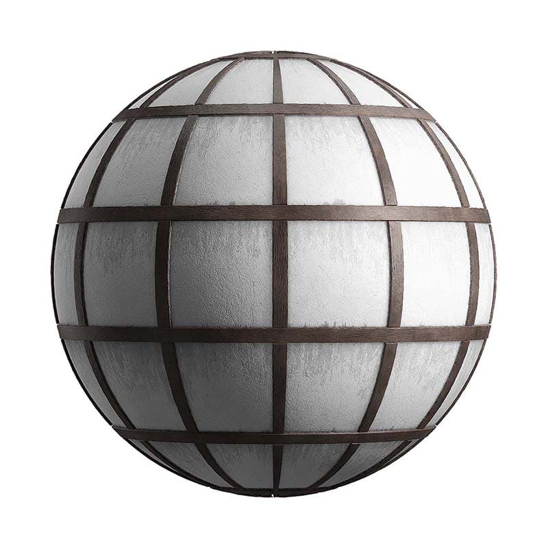 White Plaster Wall with Wooden Beams PBR Texture