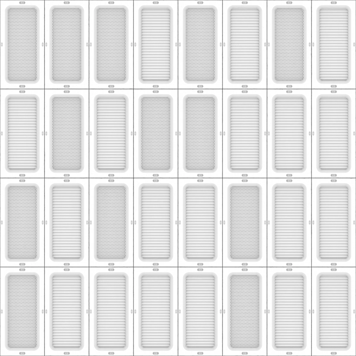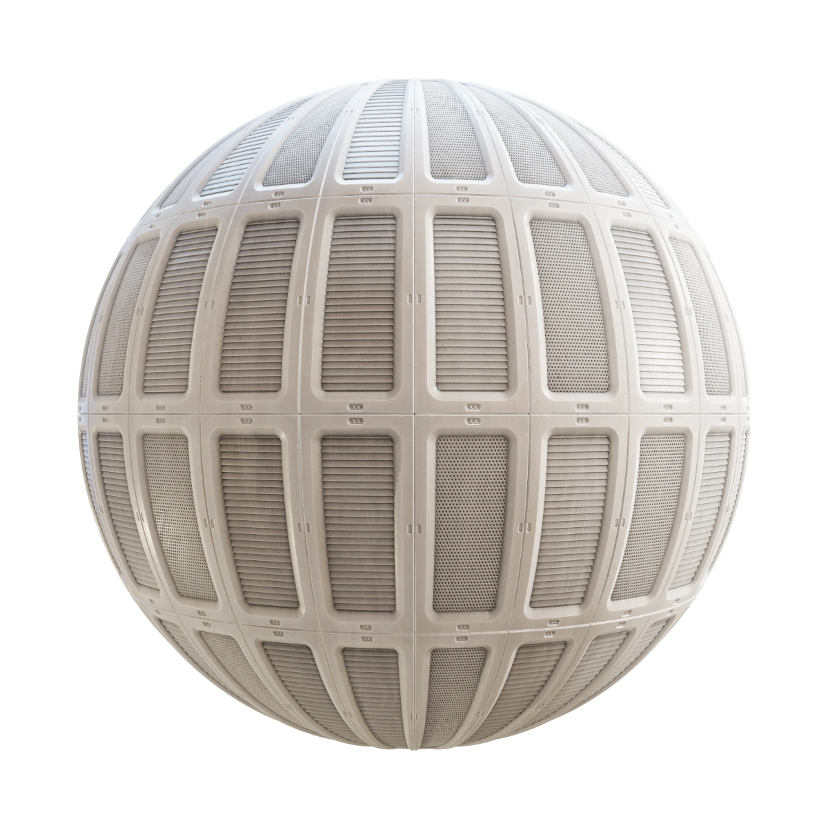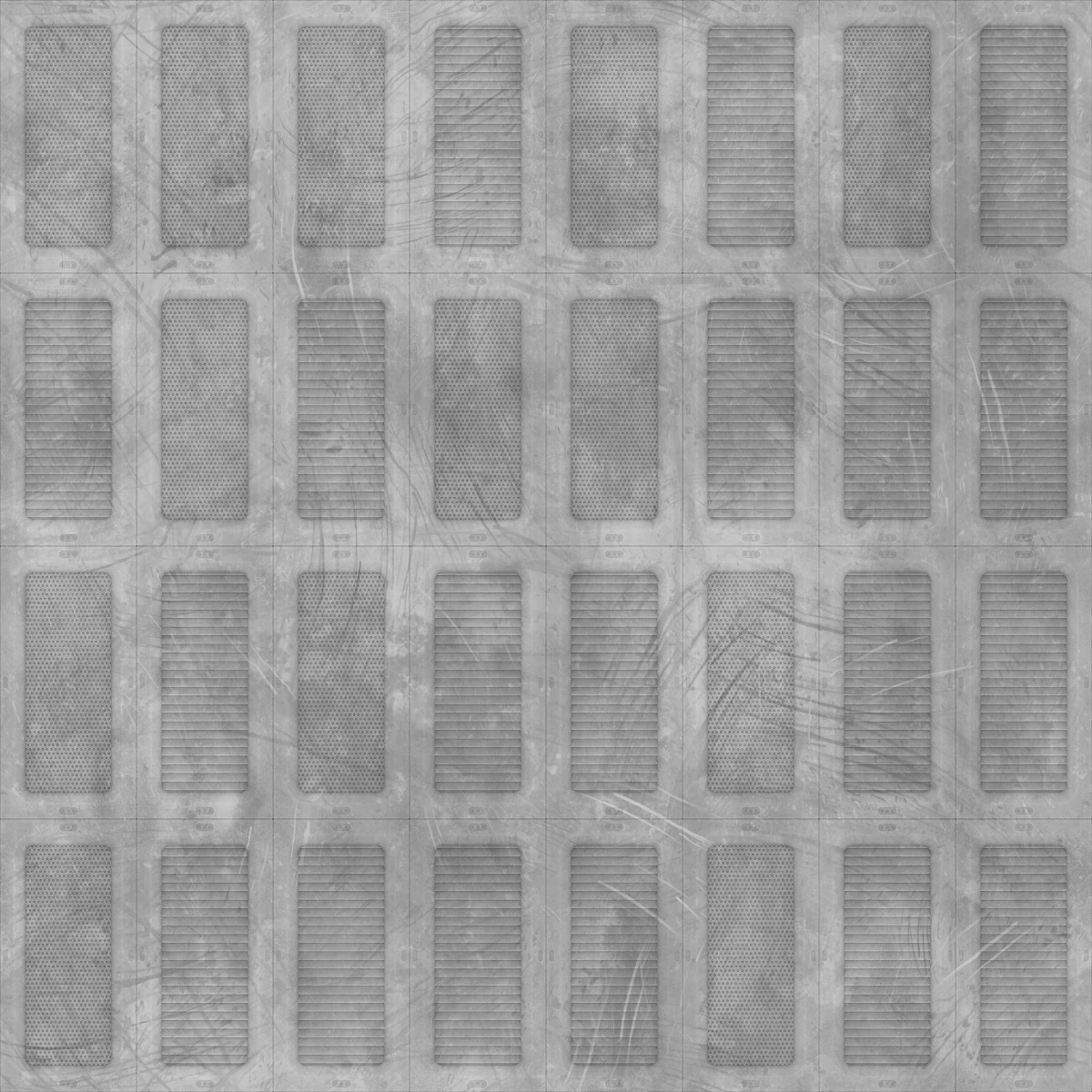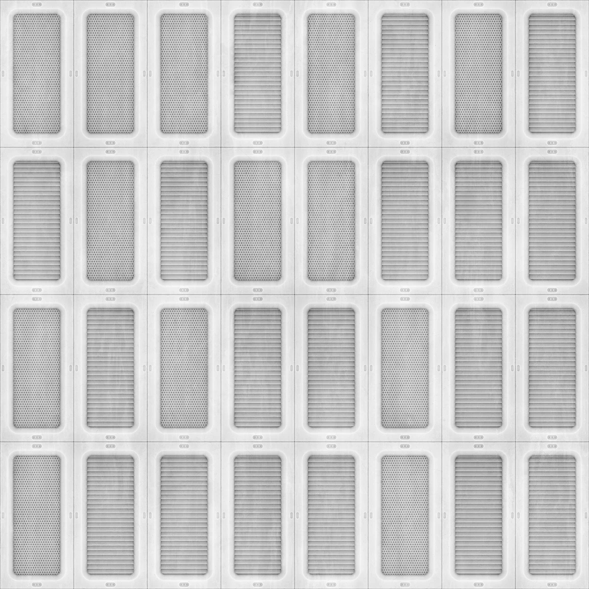 White Spacestation Vents PBR Texture with maps: basecolor/diffuse, glossiness, height (TIFF), IOR, metallic, normal (DirectX), normal (OpenGL), reflection, roughness and specular. Resolution: 8192x8192px and 4096x4096px.